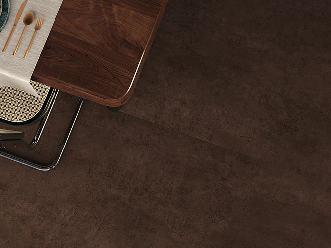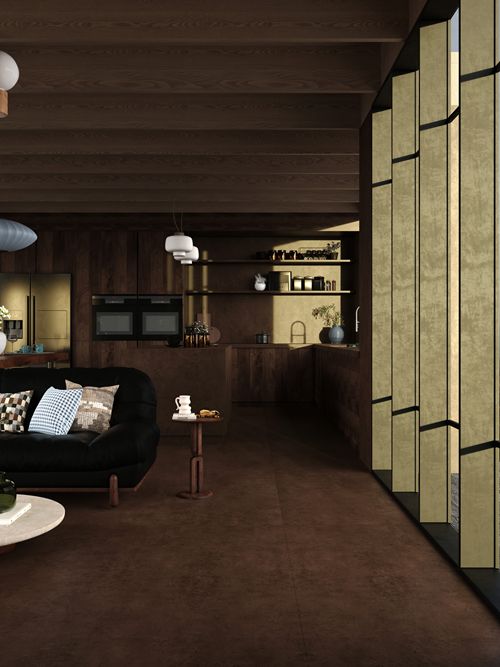 自然会以润物细无声的方式来影响着我们的生活,设计师通过研究对铁器在自然状态下氧化的过程,把自然与工业进行设计上的融合,还原出铁锈在自然状态下纯真的形态,斑驳的锈迹是风霜或雨露,棕色的底色、铁锈的光感,极致细腻,复古时尚。